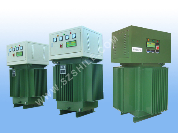 产品介绍 油浸式稳压器由调压变压SSTS(包括油箱、定子、转子顶盖、传动控制电机M、手轮机构及控制线路板调压控制二次线路元件)等组成。通过电动机传动或手轮机构及齿轮耦合来实现转动调压,转动范围在180°内,并在油箱上端设有电SS限位及机械限位,电SS限位由行程开关来切断电动机电源,机械限位由保护螺栓来阻断其转动术限。定子绕组及转子绕组通过底坐架固定,放入油箱中,箱内装有10#变压器油,在负载产生热量时,通过油浸冷却方式,经散热管散热。具有错相、缺相、超压、过流保护;主回路无触点调节、无机械磨损、无火花产生无干扰影响、故障率低等特点;而且耐强冲击、瞬时超载能力超强、使用寿命长、无需维护等优点。
