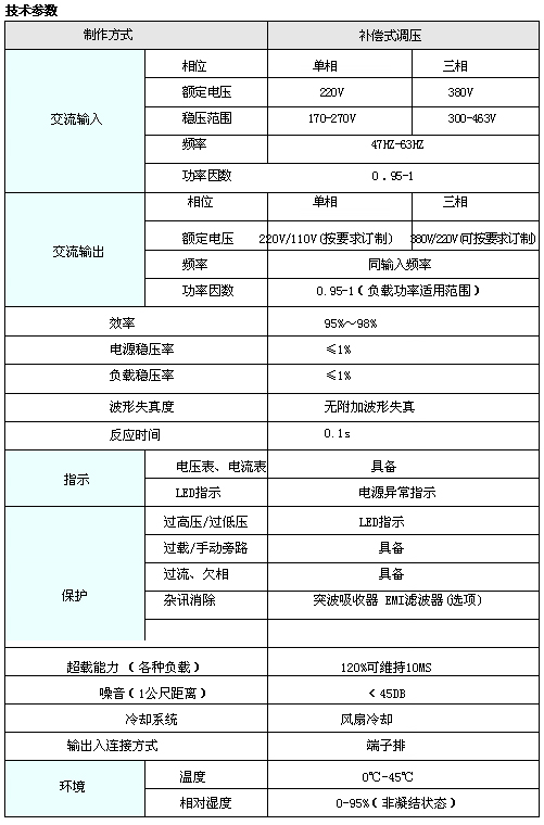 主要特点 小:外形美观小巧、仅有传统机型的1/4 新:新设计、新电路、新造型高:高效率、高功率因数、高可靠度、高过载能力广:负载范围广,适用于感受性、容性、阻性等各种负载,可配合发电机使用稳:补偿式电压调整方式,并非跳段式输出,电压是线性升降式控制,输出平滑、稳定安:旁路保护、过载保护、超大型过稳压范围保护无后顾之忧省:超低损耗、省电、省钱、省空间、省烦恼